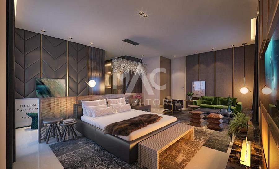 Aparatamento Frente Mar com 05 suítes, living para 03 ambientes com cozinha integrada, área de serviço e 05 vagas de garagem. Condominio com lazer completo entre eles, quadra de futebol society, piscina com prainha, piscina aquecida coberta e beauty lounge. No Centro de Balneário Camboriú / SC.