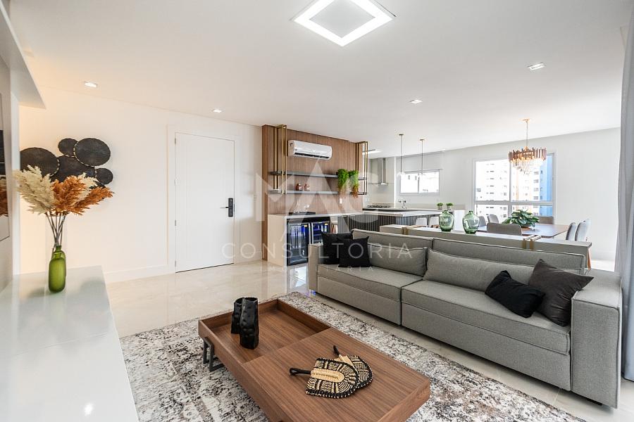 Apartamento quadra mar, com 04 suítes, living para 03 ambientes integrado com a cozinha, lavanderia, entrada de serviço e 03 vagas de garagem. Condominio com piscina, jacuzzi, salão de festas, cinema, solarium e playgroud, no centro de Balneário Camboriú / SC.