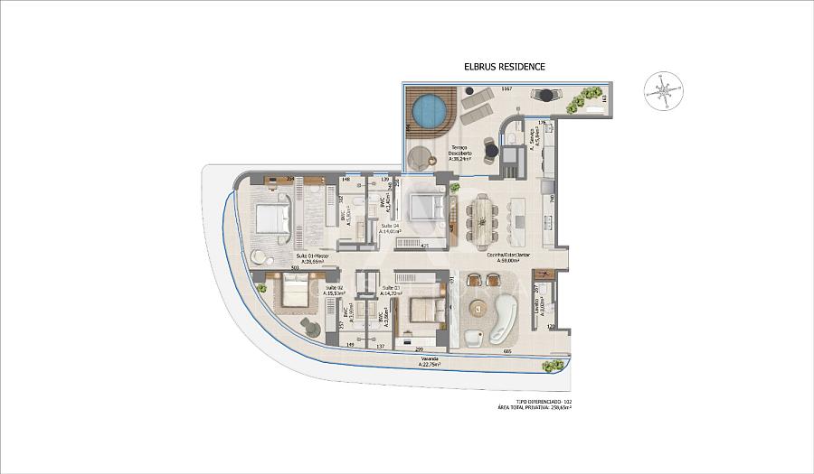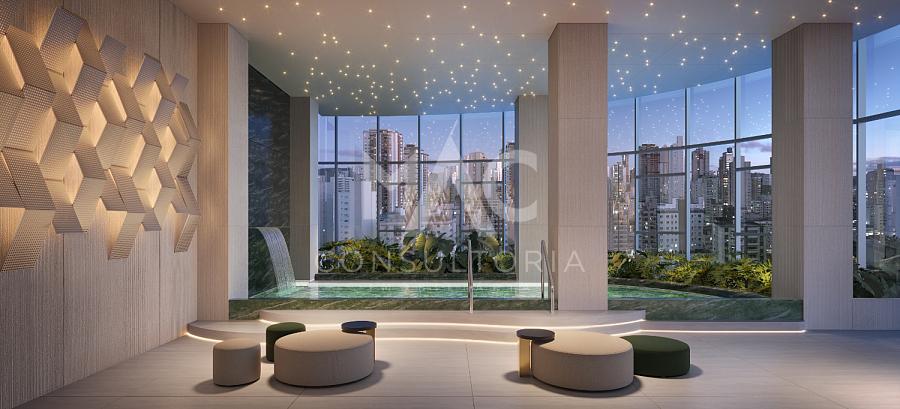Apartamento 04 suítes, living para 02 ambientes com cozinha americana integrada, área de serviço com acesso separado e banheiro, 03 vagas de garagem em condominio com lazer completo, incluindo sala de cinema, piscina térmica, sauna, no centro de Balneário Camboriú / SC.