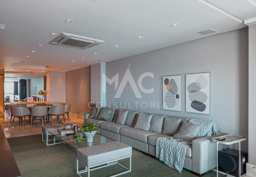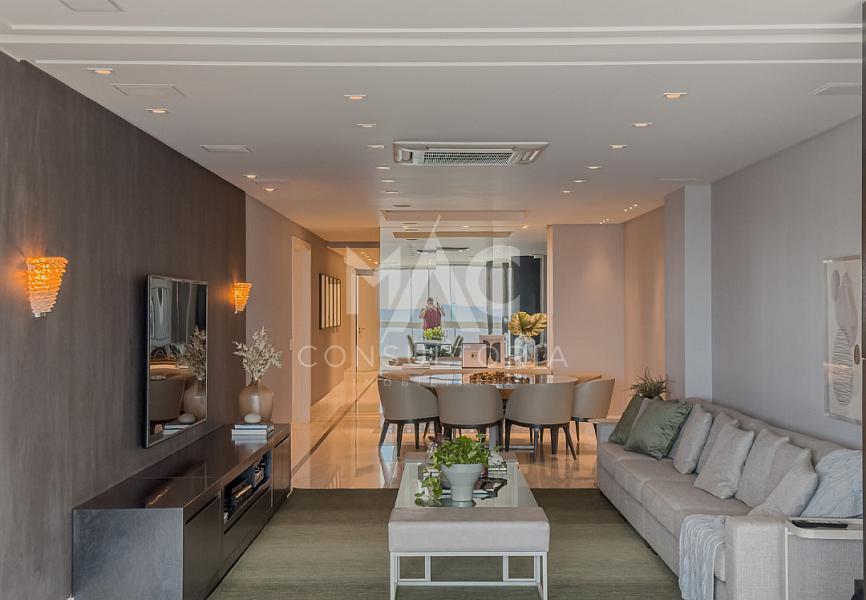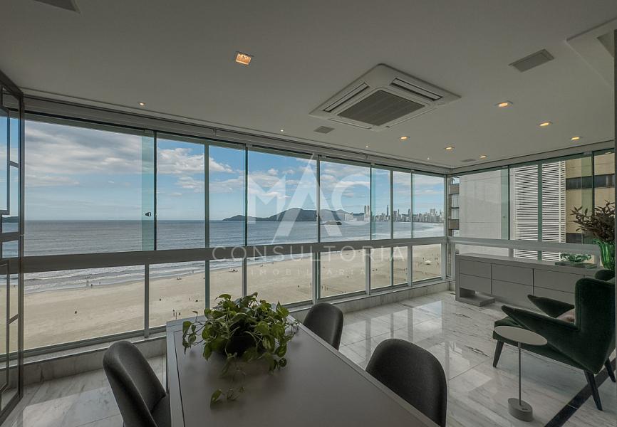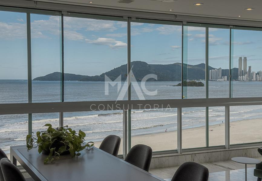 Apartamento Frente Mar, Decorado, com 03 suítes, living para 03 ambientes com espaço gourmet, estar intimo, cozinha, área de serviço com banheiro e 04 vagas de garagem. Condominio com área de lazer com piscina, academia, brinquedoteca, salão de festas e estar social, no Centro de Balneário Camboriú / SC.
