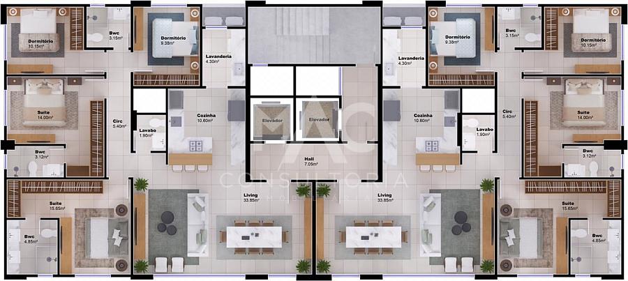 Apartamento 02 suites + 02 dormitórios, lavabo, sala 02 ambientes, cozinha, lavanderia e 02 vagas de garagem. Condominio conta com piscina, salão de festas, academia e playground. Centro de Balneário Camboriú / SC.