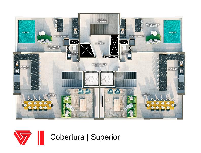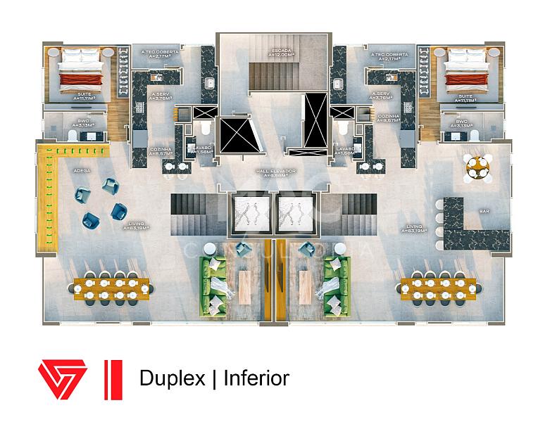 Apartamento duplex com 04 suites, living para 03 ambientes, cozinha, lavanderia, lavabo, estar intimo no pavimento superior e 03 vagas de garagem. O condominio conta com piscina, academia, salão de festas, sala de jogos e espaço PET, no centro de Balneário Camboriú / SC.