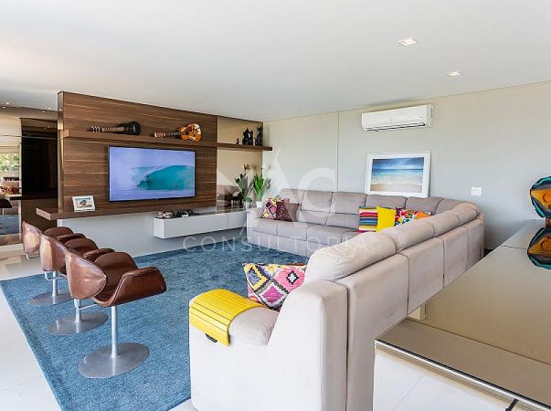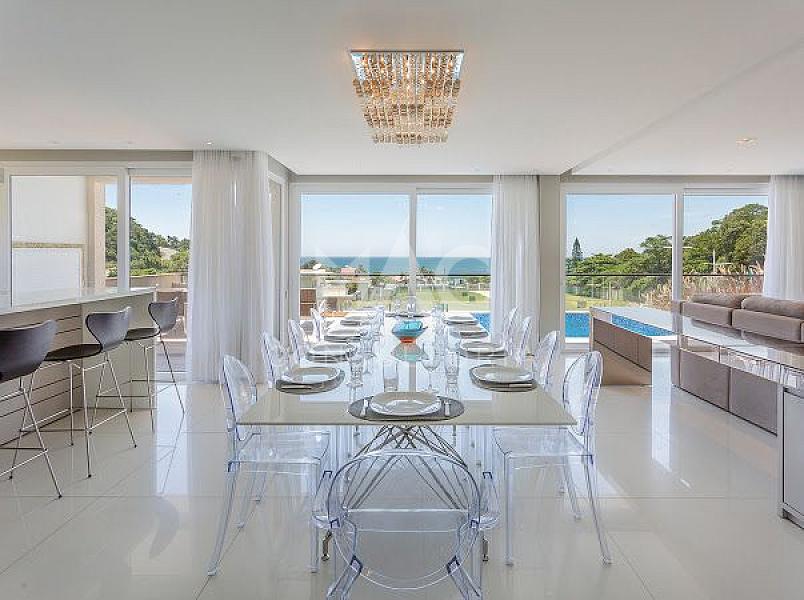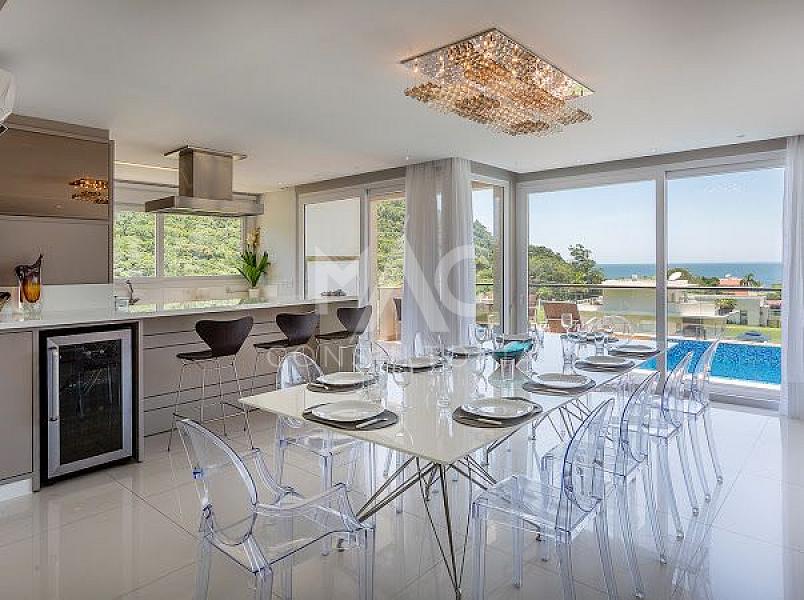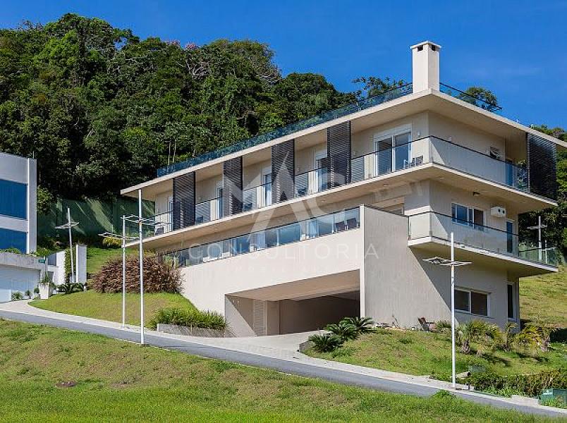Casa em condominio com vista panoramica da prais de Estaleirinho, Balneário Camboriú / SC, com 05 suítes, living amplo, cozinha, área de serviço, dependência de empregada, piscina com vista para o mar, adega, elevador interno e 06 vagas de garagem.