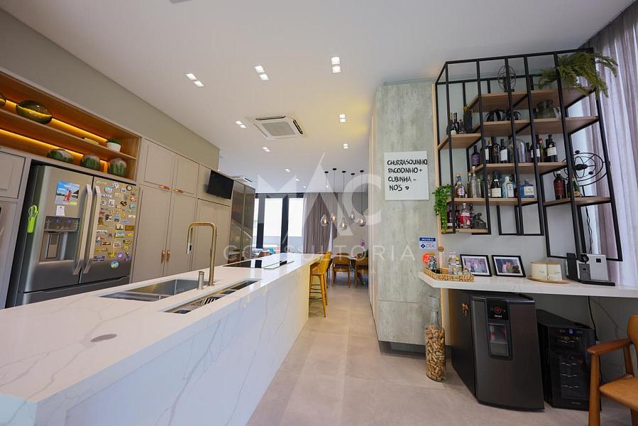 Casa mobiliada em condomínio, com 04 suites, living para 02 ambientes, espaço gourmet e piscina privativa. Condominio conta com playground, piscina, quadra poliesportiva, de padel e beach tênis e campo de fultebol, no centro de Balneário Camboriú / SC.