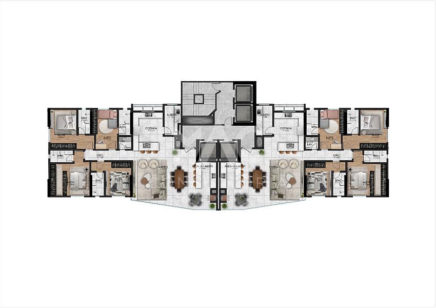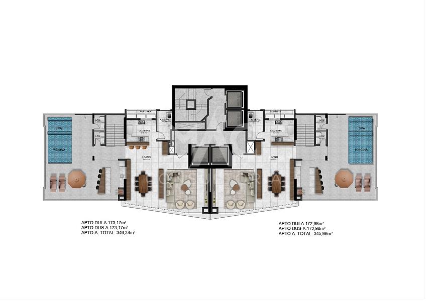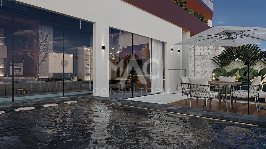 Cobertura Duplex com 06 suítes, living para 03 ambientes, cozinha e espaço gourmet integrado com piscina privativa, área de serviço, lavabo e 04 vagas de garagem, condominio com piscina, saláo de festas, sauna, academia, no centro de Balneário Camboriú / SC.