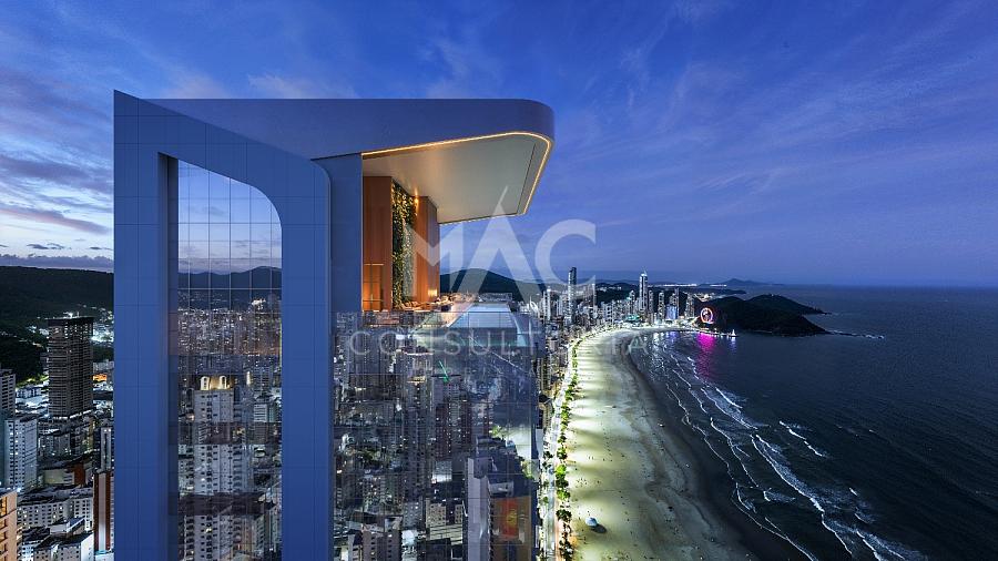 Penthouse duplex frente Mar de Alto Padrão com 06 suítes, 02 livings para 4 ambientes, jacuzzi, piscina privativa, área gourmet, despensa, cozinha, área de serviço e 06 vagas de garagem. Condominio com infraestrutura completa de lazer, com piscina de borda infinita e aquecida no 9º andar, Rooftop mais alto do Brasil a 185 metros de altura, Heliponto, Mirante Ocean View, Wine Bar, Consierge, área exclusiva de funcionários com vestiarios. no Centro de Balneário Camboriú / SC.